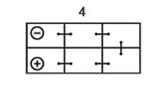 Для определения полярности грузовых аккумуляторов, если клеммы (токовыводы) расположены вдоль короткой стороны, нужно развернуть батарею этой стороной от себя. Тогда, если "+" справа - полярность "3" ("обратная" или "европейская" для грузовых автомобилей), а если слева – у аккумулятора полярность "4" ("прямая" или "российская" для грузовых автомобилей). Кроме того, могут встречаться грузовые аккумуляторы с полярностью "2" - клеммы у таких аккумуляторов расположены по диагонали, также существует полярность "9" (она же иногда обозначается цифрой "5") - в этом случае клеммы расположены посередине крышки аккумулятора.